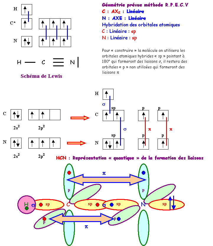 molécule avec interactions sp par l'ordre d'apparition des diverses orbitales
