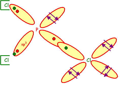 des orbitales atomiques P : Tétraèdre : sp3 Cl :