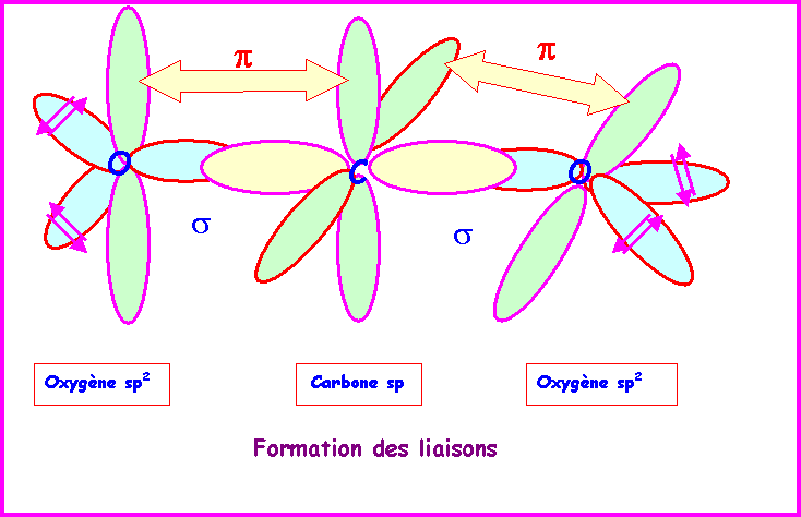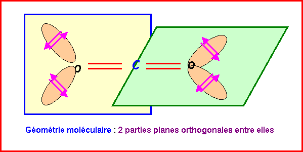 Ici, la molécule est simplement linéaire, les doublets libres de O