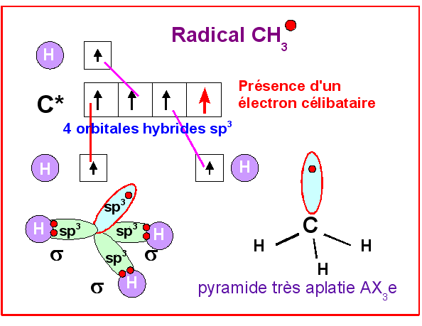 l’atome de carbone possède un électron célibataire. L’exemple le plus simple est