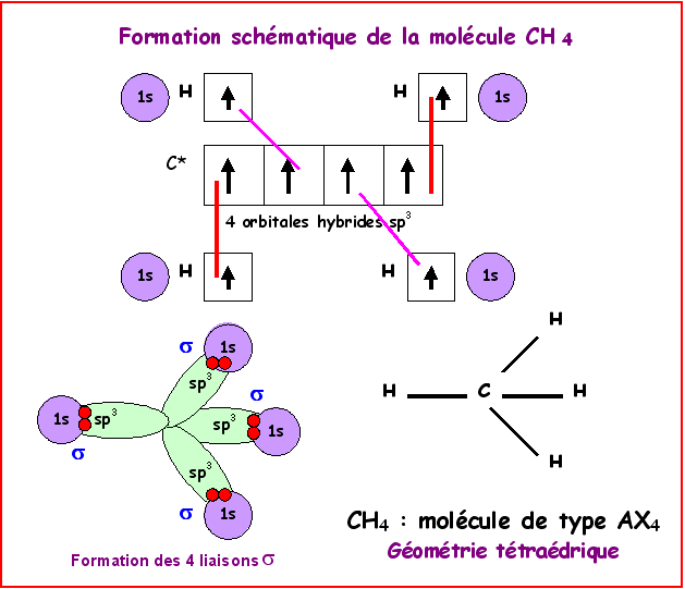 directions du tétraèdre. Ces 4 orbitales hybrides vont ensuite former les 4