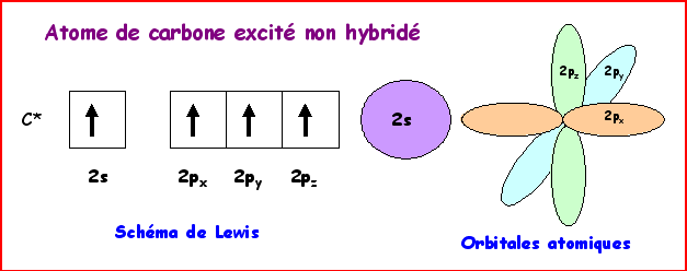 orbitales de valence 2s , 2px, 2py et 2pz qui