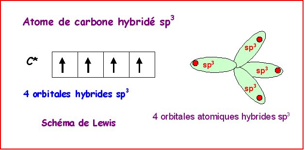 vont donner 4 orbitales hybrides notées sp3 pointant dans les 4