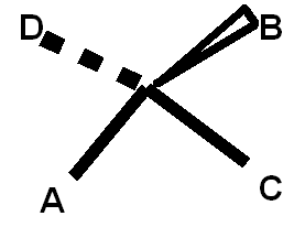 Les liaisons dans le plan du papier sont représentées par des traits simples.