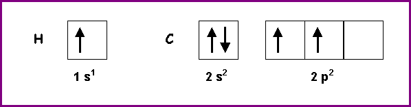 On peut utiliser l'état excité 2 s2 - 2 p2 de l'atome de Carbone pour augmenter sa valence et former quatre liaisons avec quatre atomes d'Hydrogène.