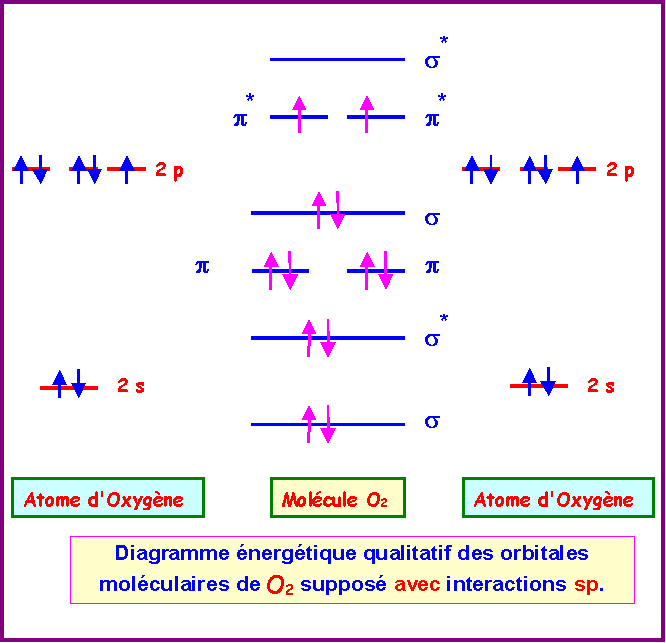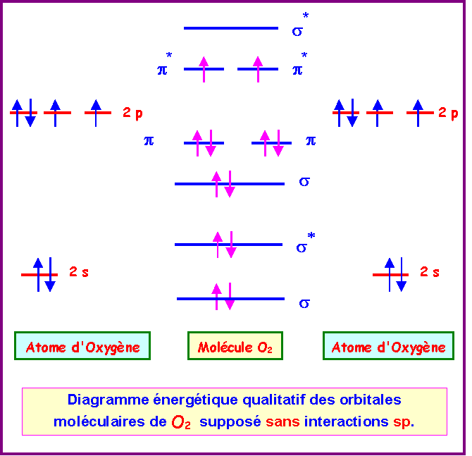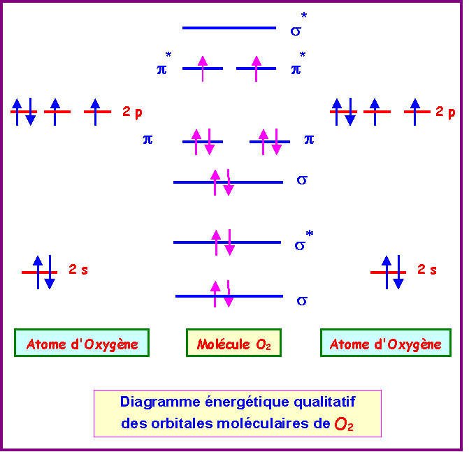 Si on ajoute un électron pour former O2- l'électron supplémentaire se placera sur le premier niveau vacant (non complètement occupé) c'est à dire ici p1*.