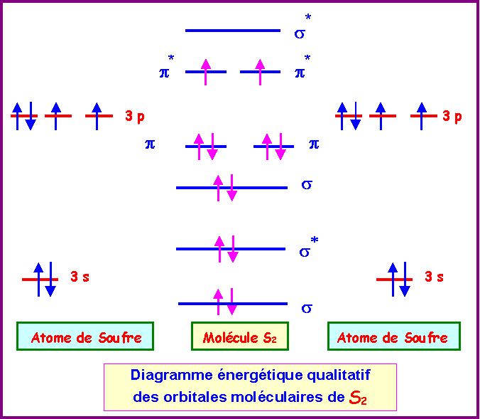 Leurs orbitales atomiques sont donc similaires et le diagramme des orbitales moléculaires de S2 est semblable à celui de O2 établi précédemment.