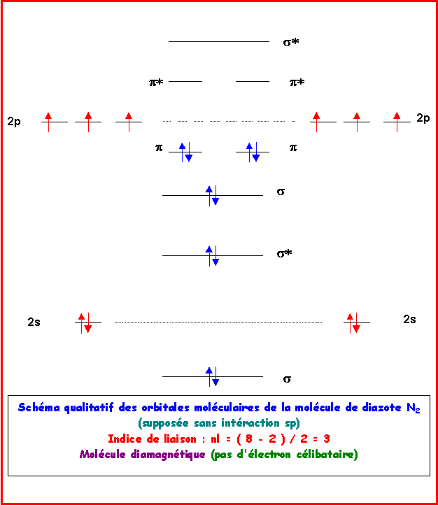 Nous avons vu plus haut que les diagrammes avec ou sans interaction conduiront aux même conclusions puisque seules les molécules Be2 et C2 conduisent à des différences notables. On sait d'autre part que O2 est en fait sans interactions sp à cause de l'écart énergétique important entre les niveaux 2s et 2p.
