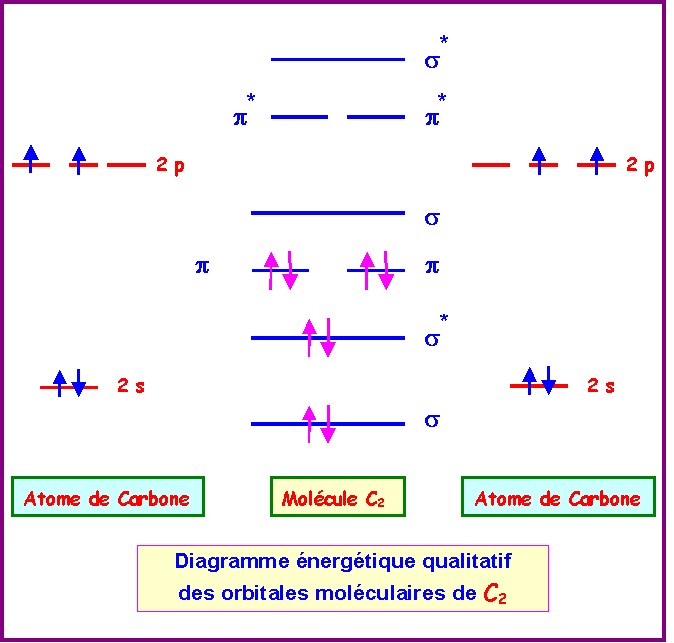 Si on ajoute un électron pour former C2- l'électron supplémentaire se placera sur le premier niveau vacant (non complètement occupé) c'est à dire ici s2.