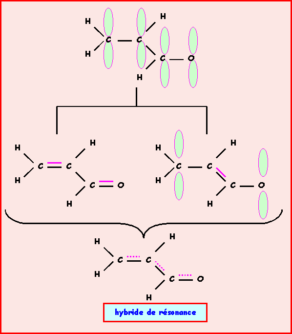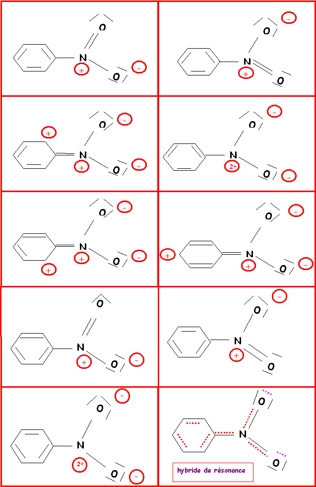 Ces liaisons seront en fait intermédiaires entre simple et double liaison. La molécule est un hybride de résonance entre plusieurs formes mésomères qui diffèrent par la position des doubles liaisons.