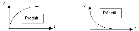 à d D + e EExpérimentalement on peut suivre l’évolution des concentrations des réactifs (A et B) ou des produits (D et E) en fonction du temps. On obtient alors des courbes ayant l’allure suivante :