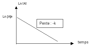 Si on porte ln [A] en fonction du temps on obtient une droite d’ordonnée à l’origine ln [A]0 et de pente -k.