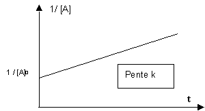 Si on porte (1 / [A]) en fonction du temps on obtient une droite d’ordonnée à l’origine (1/ [A]0) et de pente k.