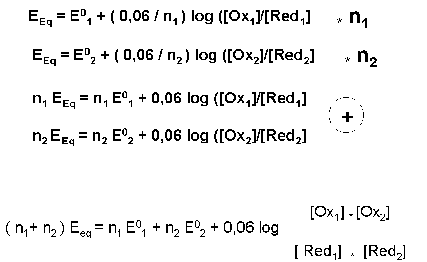 E = E01 + (0,06 / n1) log { [Ox1] / [Red1] } = E02 + (0,06 / n2) log { [Ox2] / [Red2] }