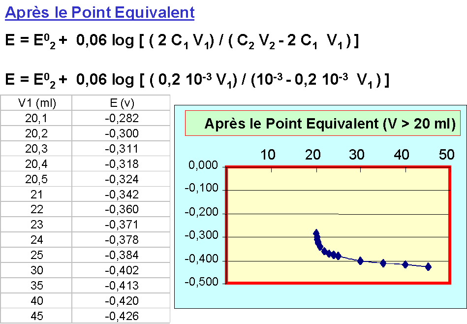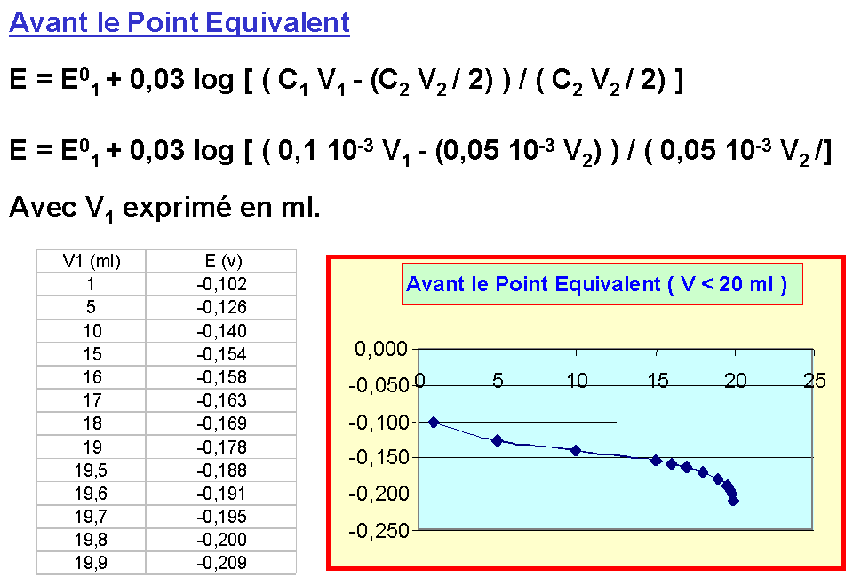 A 25 °C avec log décimal : E = E0 + 0,059 log Q