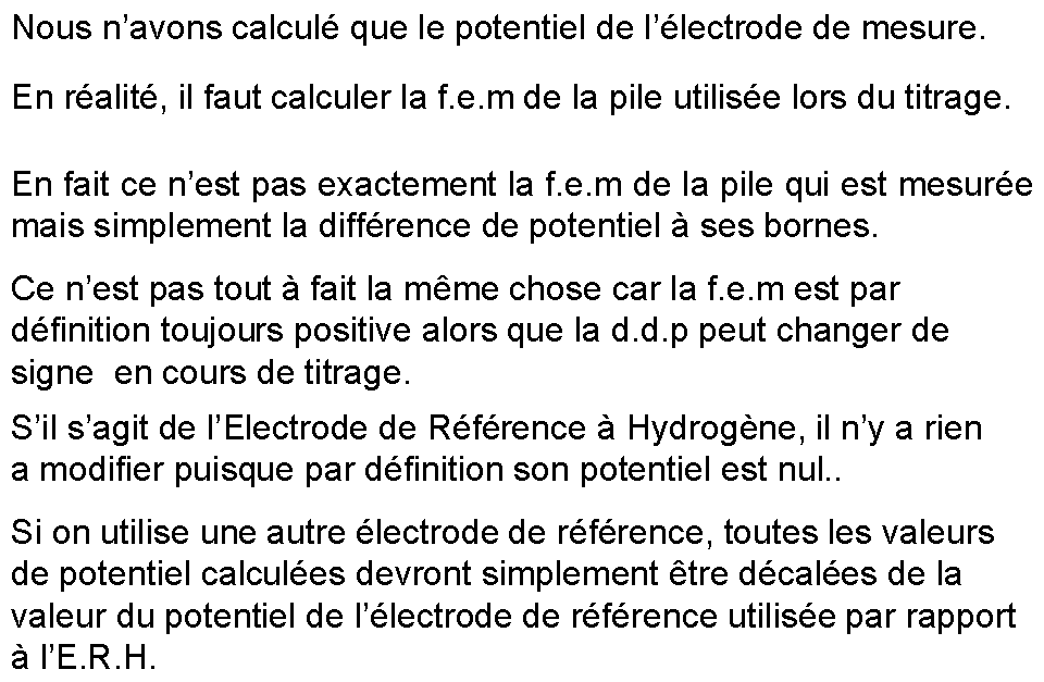 En utilisant ce potentiel de référence apparent pour un pH donné les ions H3O+ sont automatiquement pris en compte et on ne les mettra donc pas dans les expressions du potentiel de Nernst.