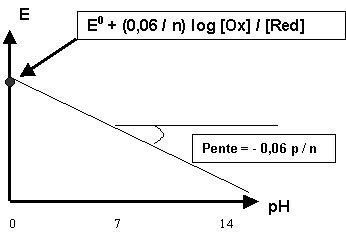 'pH = E0 apparent pour un pH donnéE = E0 + (0,06 / n) log [Ox] / [Red] - ( 0,06 p / n) pH