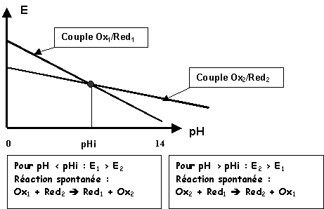 Pour des concentrations données de [Ox] et [Red] le potentiel dépend linéairement du pH