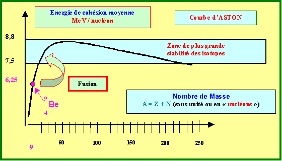 Soit pour l'énergie moyenne par nucléon : 56,31 / 9 = 6,26 MeV / nucléon