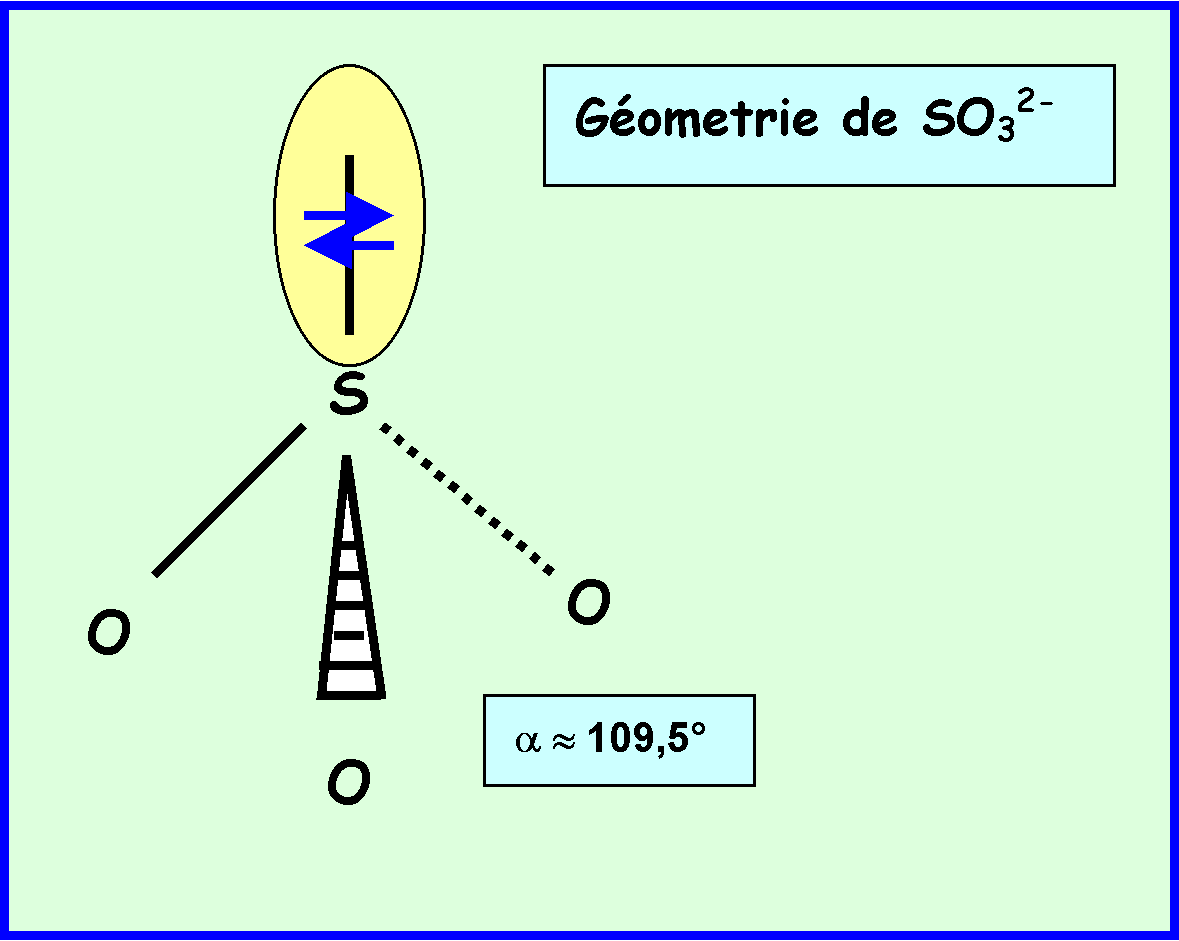 Cette géométrie correspond à un tétraèdre dont un sommet sera occupé par le doublet libre de S. (On peut aussi parler d'une géomètrie pyramidale).