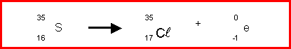 S : 16 protons et 19 neutrons par comparaison avec les isotopes stables on voit qu'il possède un "excés de neutrons", il se stabilisera en transformant 1 neutron en proton, pour cela il émetra un électron. C'est donc un émetteur de type b-.A-2-3-b : Ecrire la tranformation radioactive correspondante.