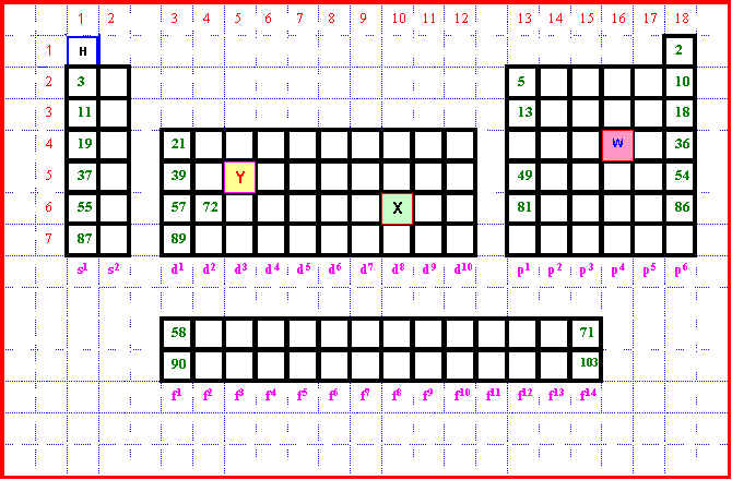 Remarque : L'élément X est le Platine Pt. Le Platine est une exception à la règle de Klechkowski et sa configuration réelle est différente de celle trouvée par simple application de la règle.