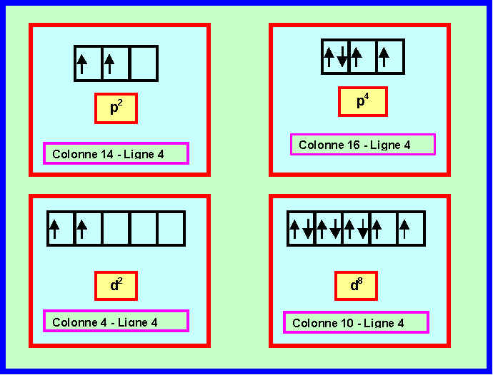 5) Un élément W appartient à la quatrième période et possède deux et seulement deux électrons " célibataires " (seuls dans une case quantique).
