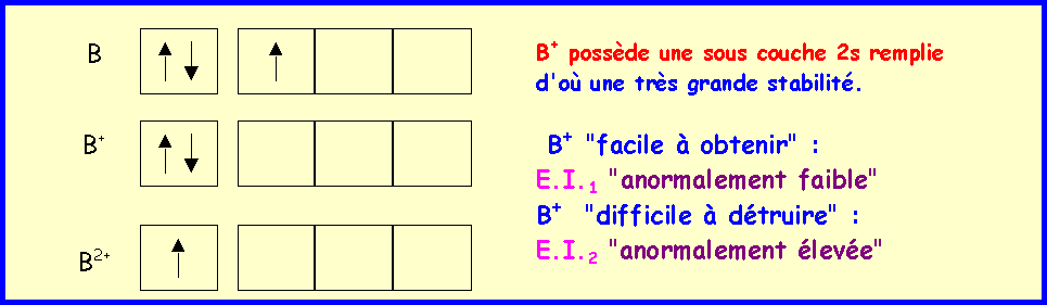 1) Pour les deux premières ionisations : justifier sans calculs, que l'une est "anormalement élevée" alors que l'autre est "anormalement faible"