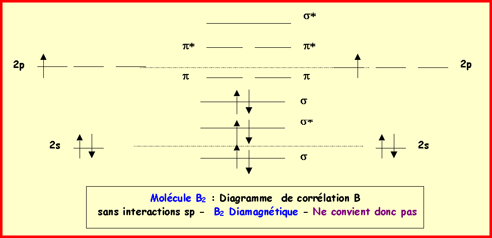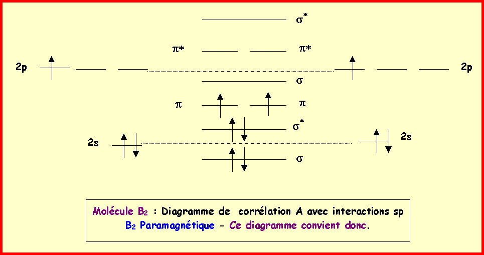 Seul le schéma A avec interactions sp permet d'expliquer le paramagnétisme de la molécule B2.