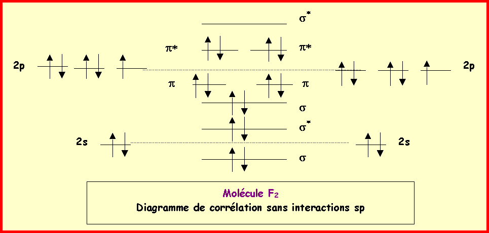 a) Compléter le diagramme qualitatif des orbitales moléculaires de la molécule F2.