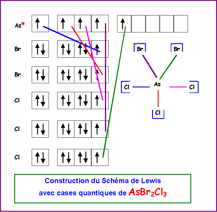 L'Arsenic étant l'atome central se voit attribué les 5 électrons de sa couche de valence et les 3 électrons supplémentaires correspondant à la charge de l'ion.