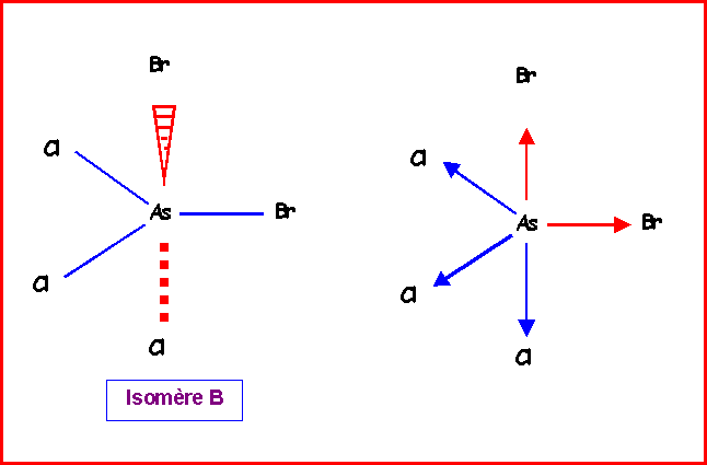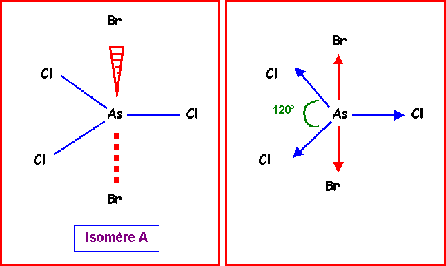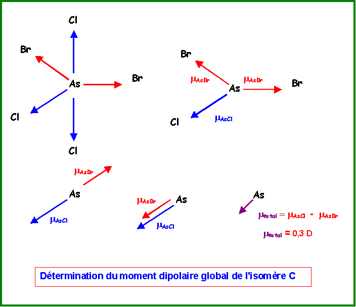On voit facilement sur la représentation spatiale que les deux vecteurs correspondant aux moments dipolaires des liaisons AsBr s'annulent mutuellement.