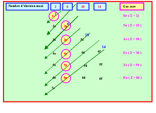 avec n = nombre quantique principal = nombre entier naturel non nul