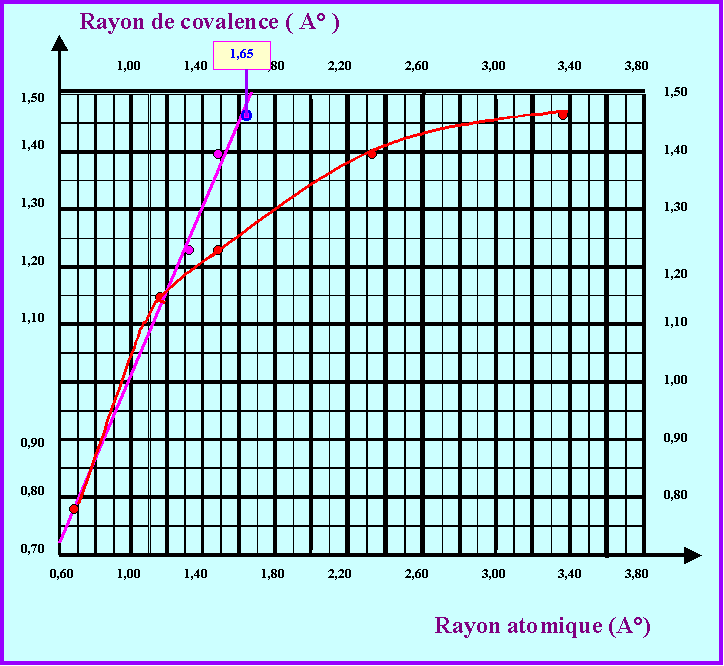 On lit graphiquement que le rayon atomique du Plomb doit être de 1,65 A° environ pour obtenir un bon alignement avec les autres points.