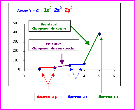 5) Pour latome Y sur le graphique on constate que les énergies dionisation successives se répartissent en deux groupes de deux (EI1 et EI2) (EI3 et EI4) ; EI5 étant très différente. Justifiez cette répartition.