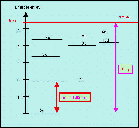 En revanche les valeurs calculées pour E.I2 et E.I3 saccordent assez bien avec les valeurs expérimentales (colonne 4), ce qui confirme l'intérêt des règles de Slater. L'écart énorme trouvé pour E.I1 peut sexpliquer par les configurations électroniques de Al et Al+.