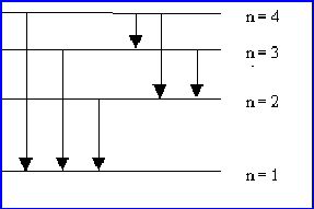 Si lélectron de lHydrogène est excité au niveau n=4, combien de raies différentes peuvent-elles être émises lors du retour à létat fondamental. Calculer dans chaque cas la fréquence et la longueur donde du photon émis.