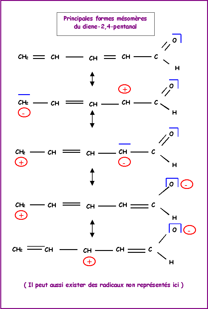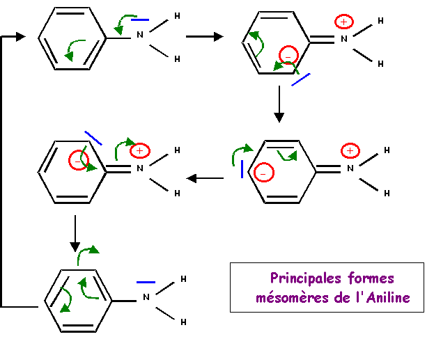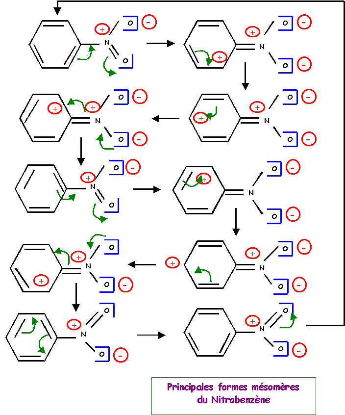 Les déplacements électroniques permettant le passage d'une forme à l'autre sont indiqués, pour faciliter la lecture le symbole de la mésomérie « à été remplacé par une simple flèche ® qui précise le sens de passage d'une forme à l'autre.