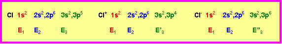 ECl = 2 E1 + 8 E2 + 7 E3 ECl+ = 2 E1 + 8 E2 + 6 E3 ECl- = 2 E1 + 8 E2 + 8 E3