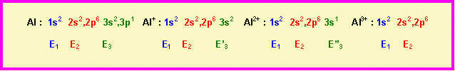 Energie de troisième ionisation : Al2+ à Al3+ + 1 e- E.I.3 = EAl3+ - EAl2+ = - E3